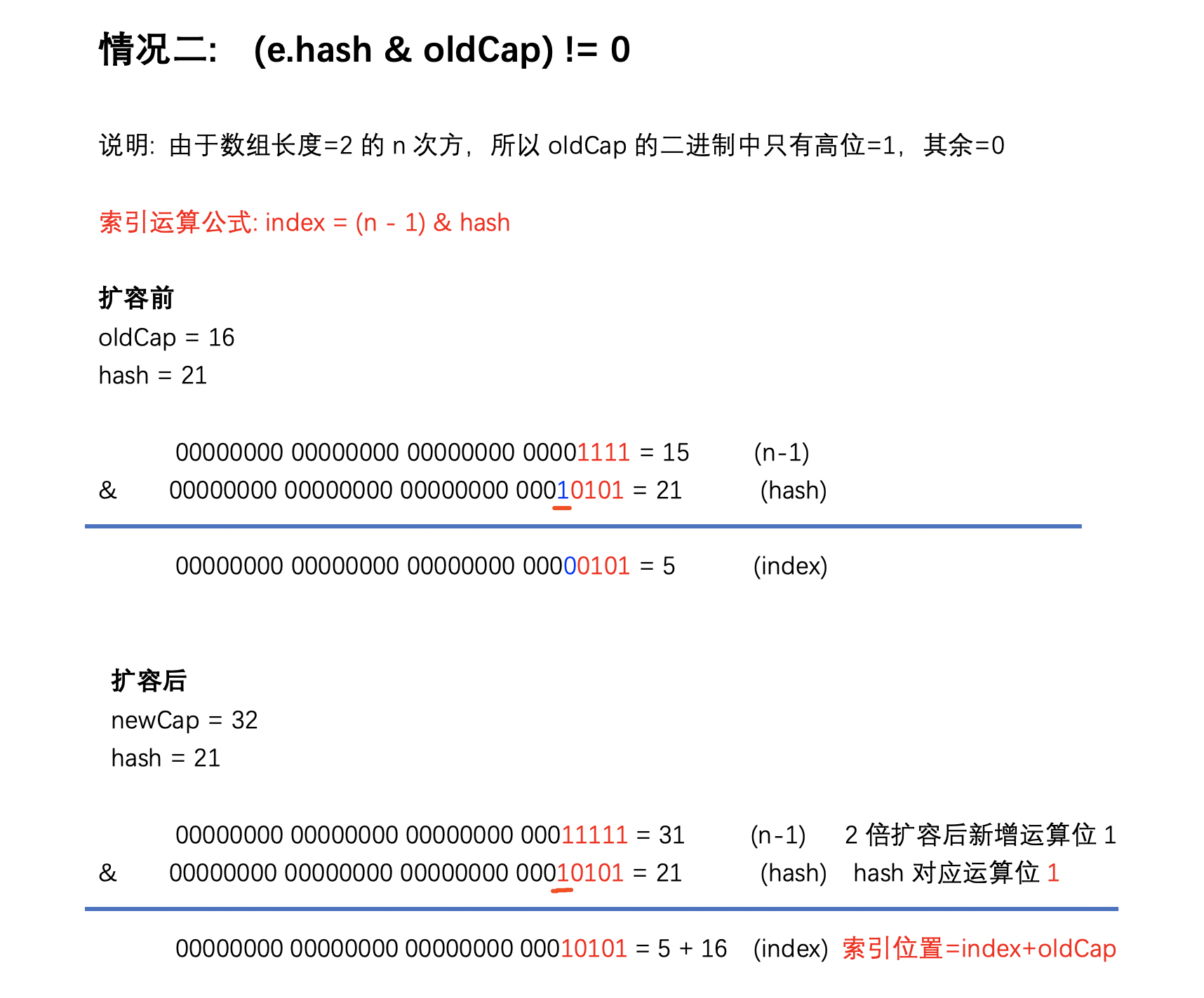 (h = k.hashCode()) ^ (h >>> 16); - 根据key.hash计算得到桶数组的索引index = key.hash & (table.length - 1),这样就找到该key的存放位置了