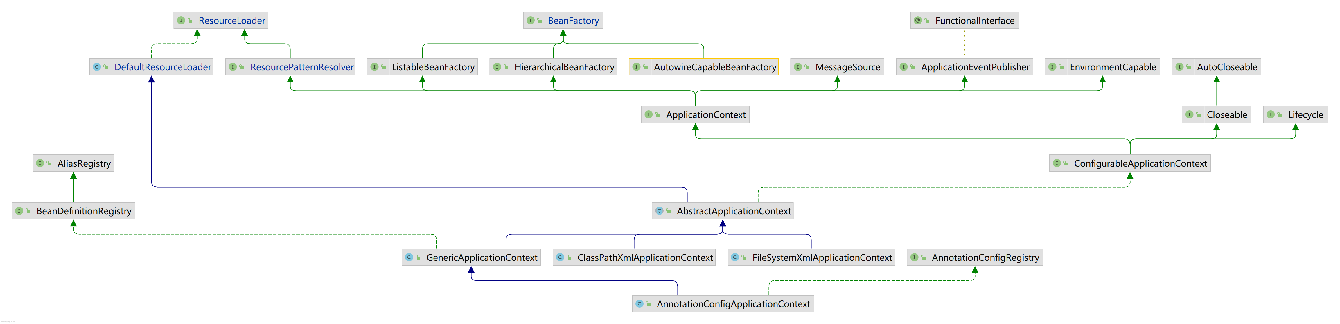 - 一些context可能通过持有AutowireCapableBeanFactory来支持自动装载能力。