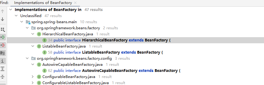 有3个接口直接继承了BeanFactory:HierarchicalBeanFactory、ListableBeanFactory、AutowireCapableBeanFactory。