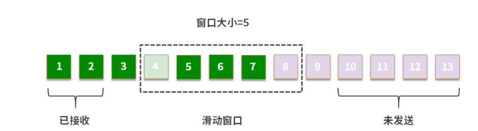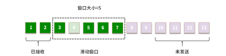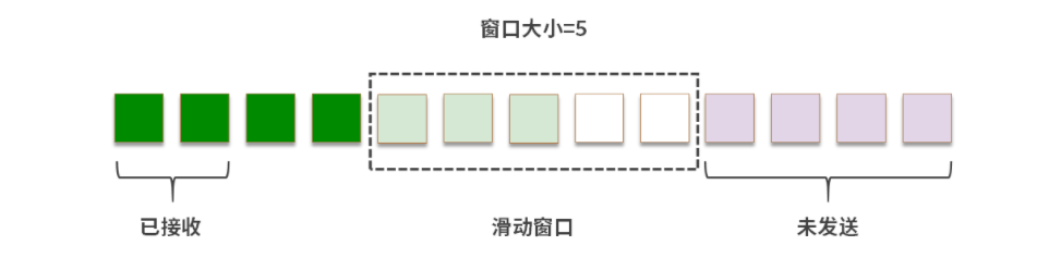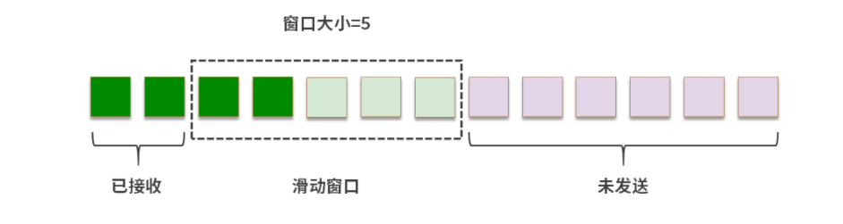 深绿色:已经收到了ACK的段 浅绿色:发送了,但是没有收到ACK的段 白色:没有发送的段 紫色:暂时不能发送的段。