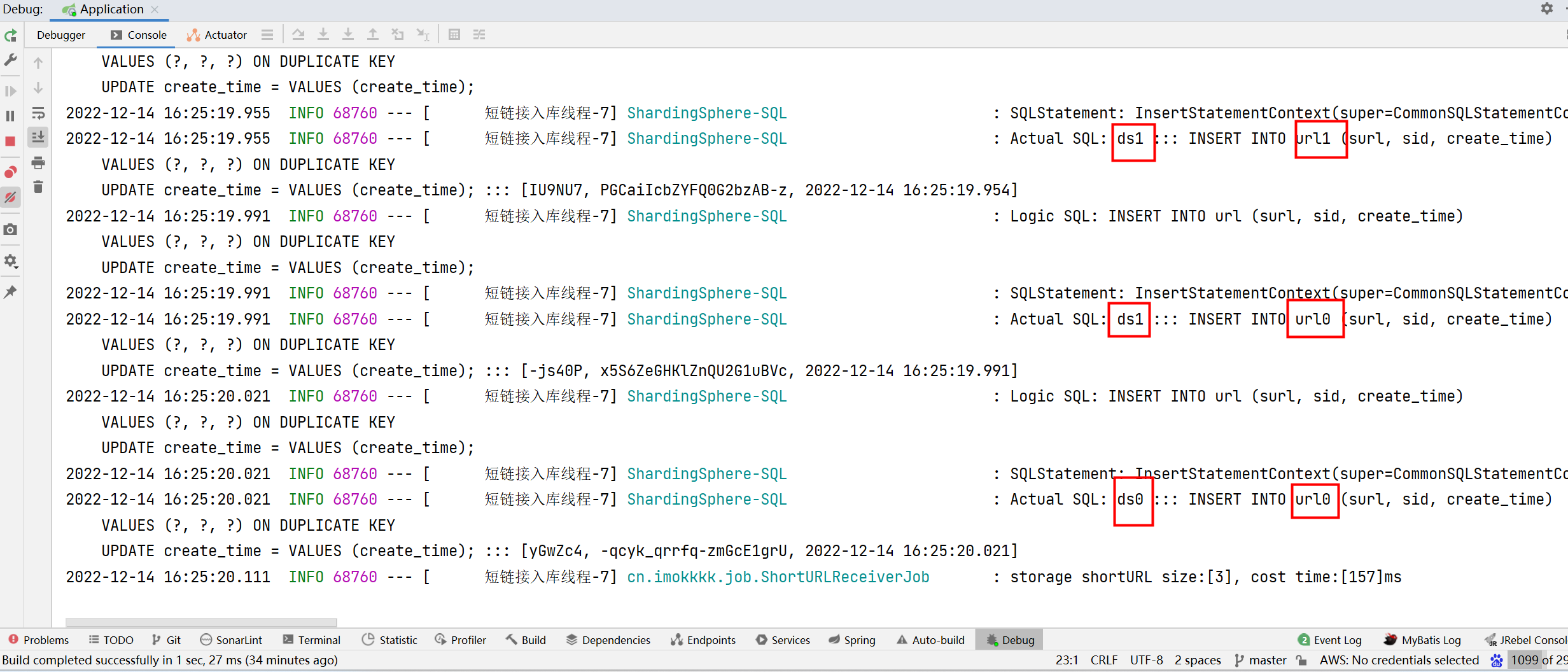 批量插入3条数据:2条数据新增到主库的url0表,1条数据新增到url1表。